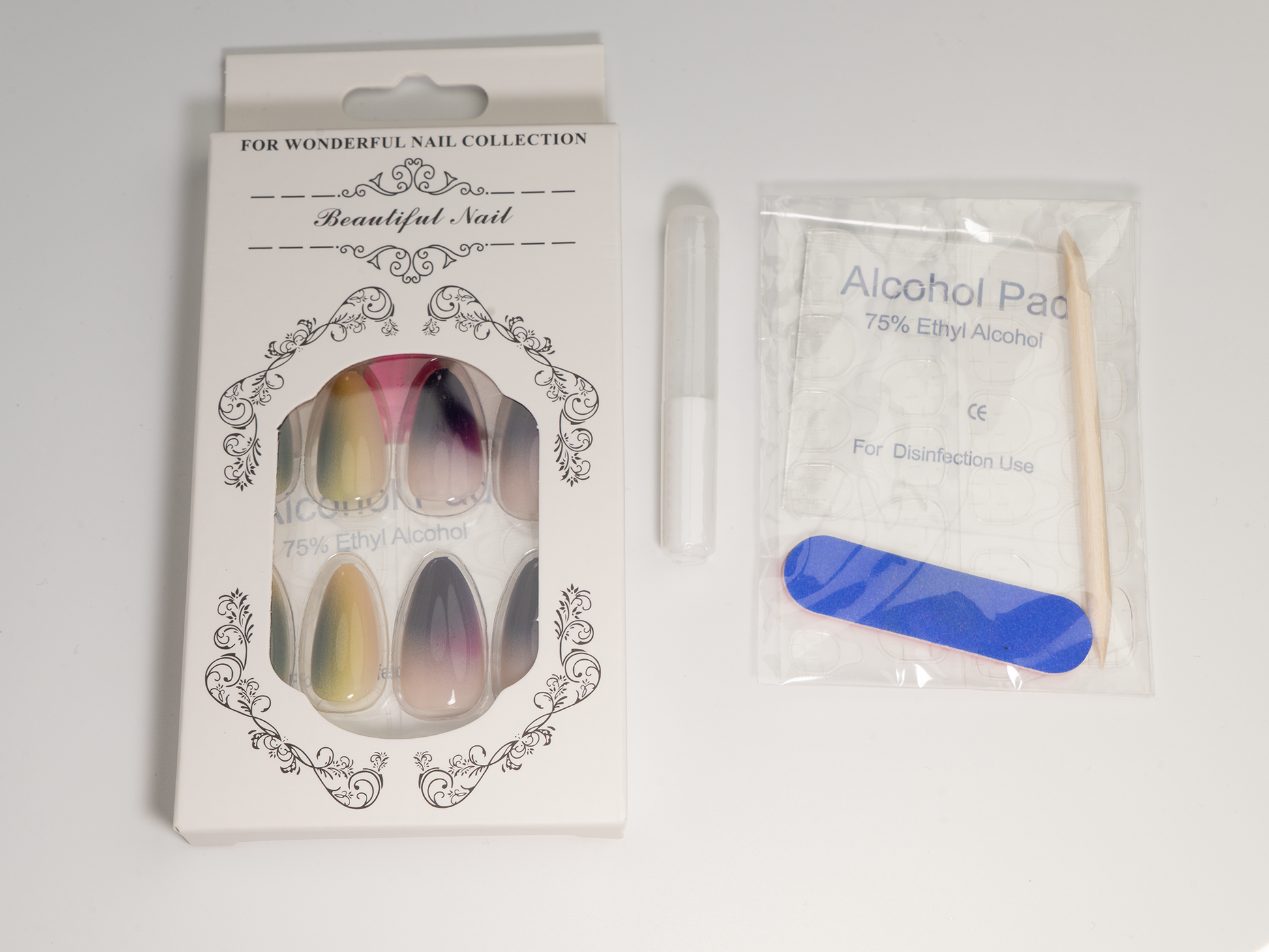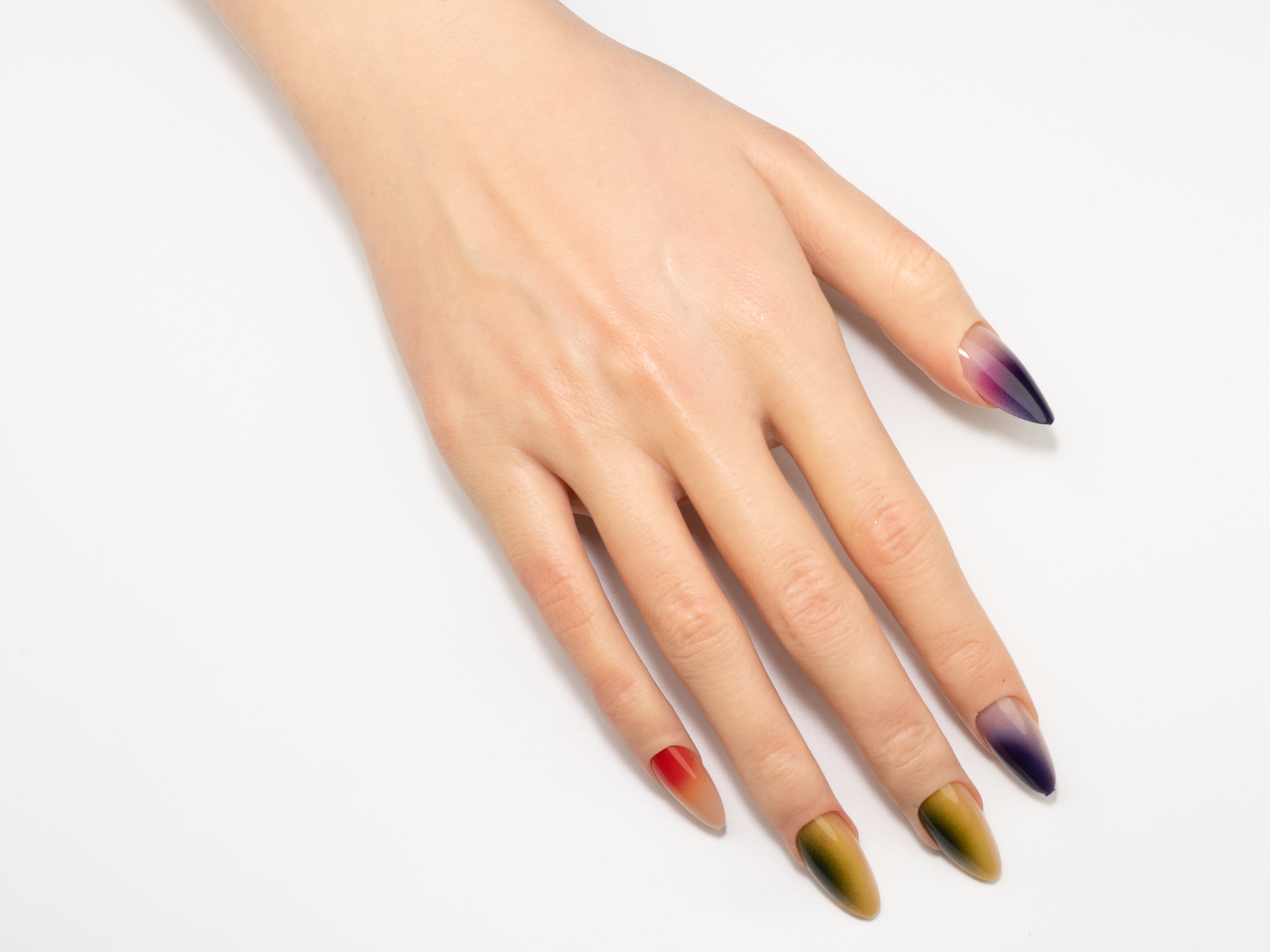 Capture the most brilliant colors of the sky with the "Sunset Glow" press-on nail collection. Inspired by the ever-changing hues of dusk, this design blends deep indigo, fiery crimson, and warm yellow. Each nail features a unique color gradient with a glossy, translucent finish, as if freezing a magnificent sunset on your fingertips. The medium-length almond shape elegantly enhances your hands with a gentle touch. These high-quality, reusable press-on nails allow you to wear this stunning glow anytime, anywhere.